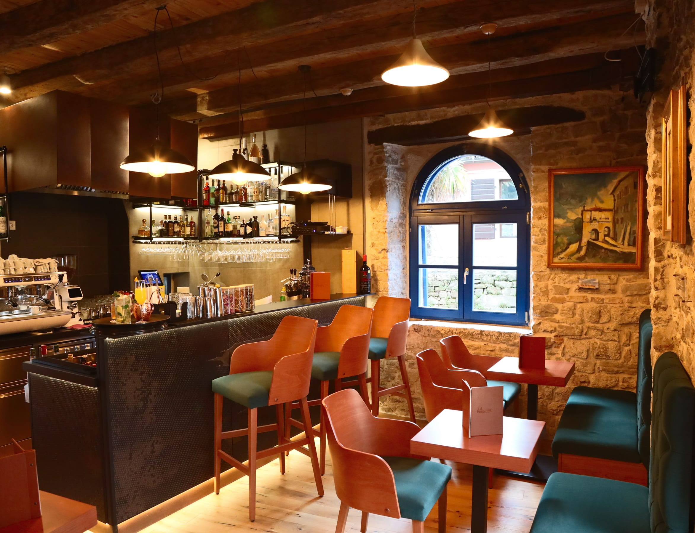 Bar u Motovunu koji spaja umjetnost, opuštenu atmosferu i vrhunske napitke. Smješten na atraktivnoj lokaciji s pogledom, idealan je za jutarnju kavu, čašu vina ili lagano druženje uz izložbe lokalnih umjetnika i ambijent s karakterom.