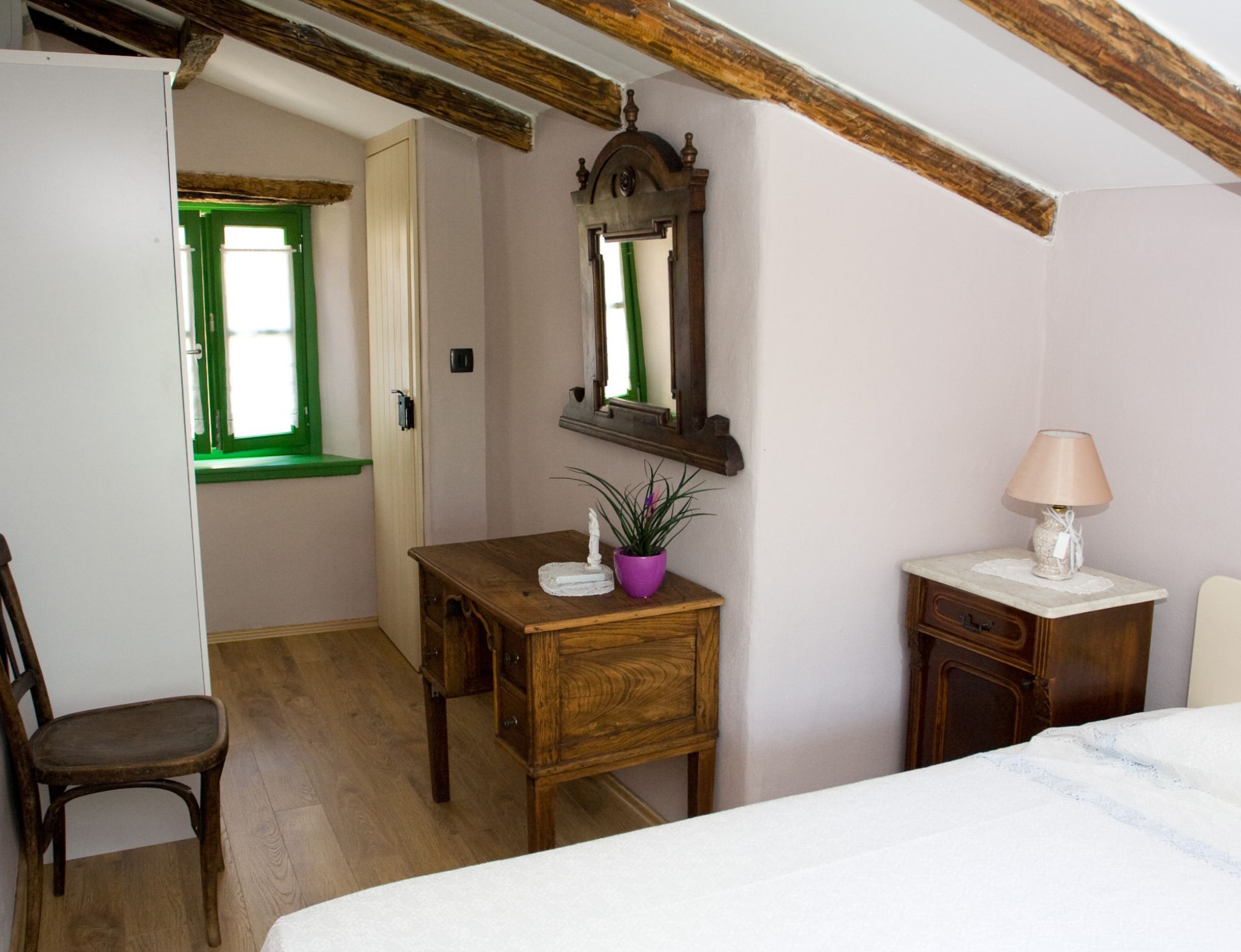 Jednokrevetna soba, s pogledom u atrij kuće, opremljena posebno komotnim krevetom dimenzija 140×200 cm, što omogućava korištenje i kao dvokrevetna soba.
